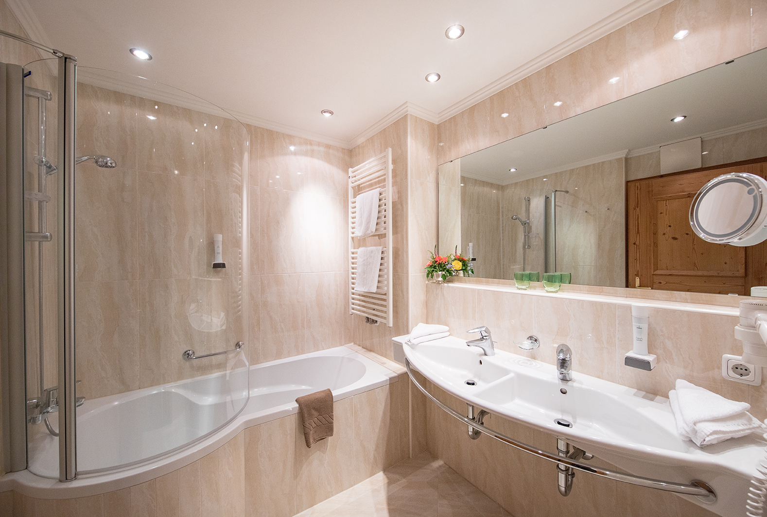 Die "Dachs" Doppelzimmer im alpinen Stil sind die kleinste Zimmerkategorie, aber sehr gemütlich.